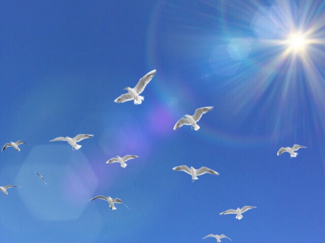 • 白い鳩が空高く飛んでいったとき